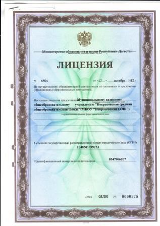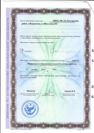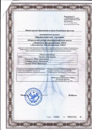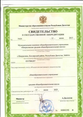 Адрес местонахождения образовательной организации* 368816 Республика Дагестан, Кизлярский район с. Некрасовка ул. Школьная 103